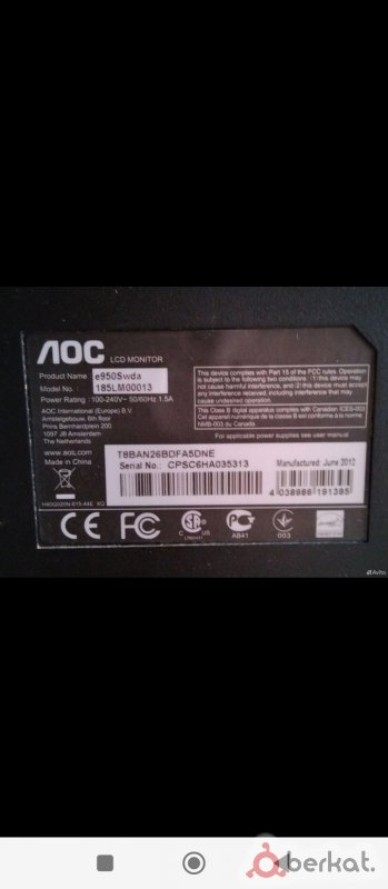 Ассалам алейкум, Монитор LG 22дм, Выход VGA, В комплекте Кабель питания. Состояние неплохой. Есть маленькая черная точка по середине.