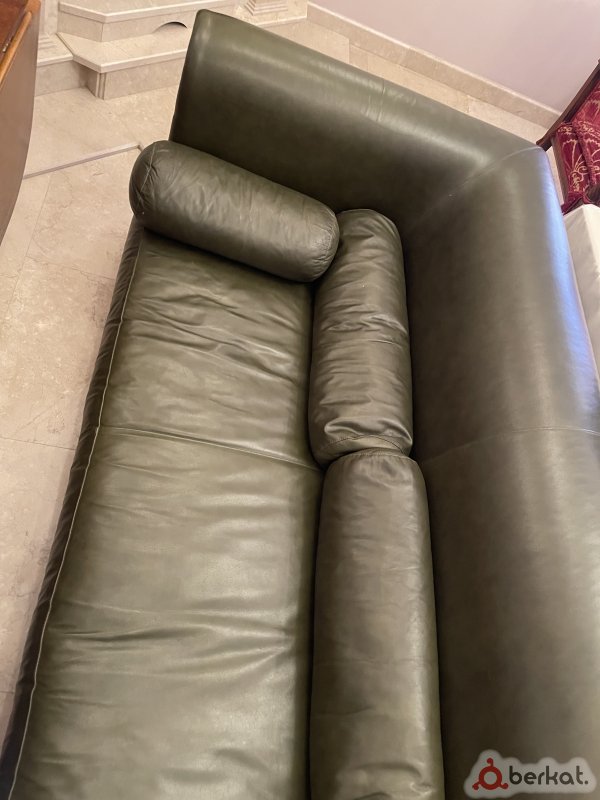 Большой кожаный диван Привезли с Италии Размеры: длина 270см Ширина: 108см Глубина: 70см Цвет: темно-зеленый (почти серый) В Малгобеке