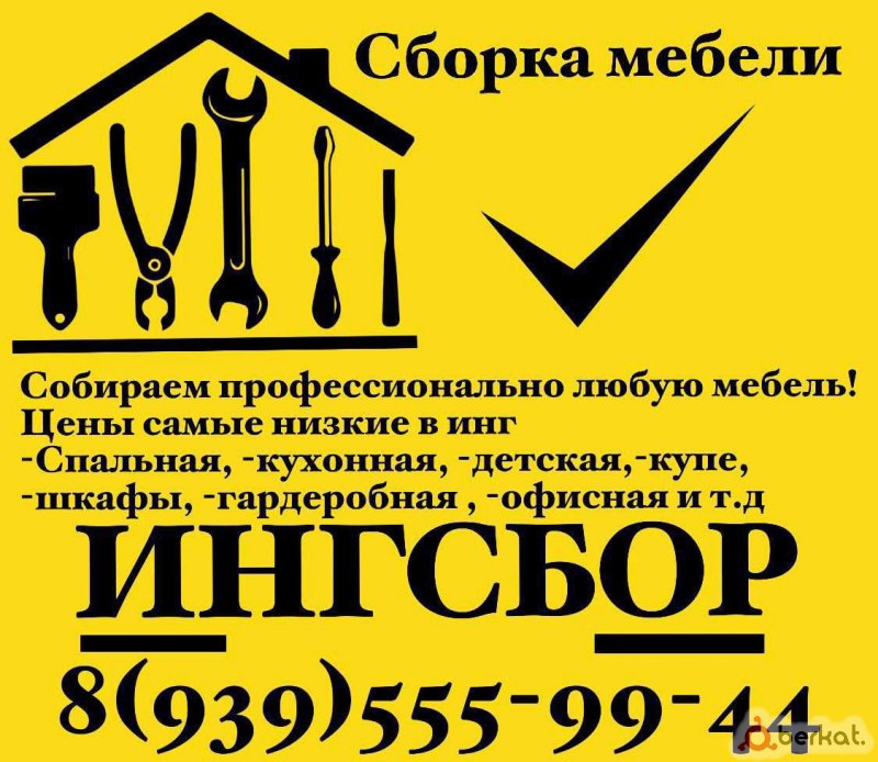 Сборка мебели по самой низкой цене Работаем по всей Ингушетии! Собираем профессионально любую мебель! Цены самые низкие в Ингушетии(если же цена не будет устраивает, сделаем так , чтобы устроило) Шкафы-купе. Кухонные гарнитуры. Стенки. Горки. Прихожие. Спальни. Кровати. Комоды. Тумбы. Антресоли. Стенды. Диваны. Детская мебель. Ремонт мебели, ровняем двери ,избавим вас от постоянно падения ящиков ! По всей Ингушетии ИНГСБОР 8(939)555-99-44