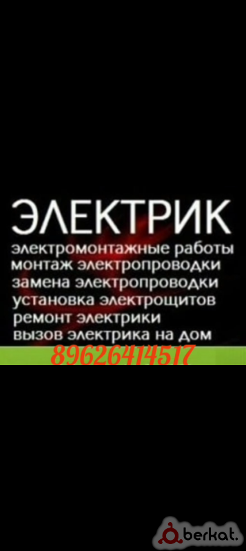 работаю под ключ дом, помещение,квартира, здания проводка света ✓установка и замена розеток и выключателей ✓сборка и установка люстр ✓монтаж/демонтаж столбов, установка светильников ✓сборка и установка щитков ✓замена проводки установка счетчиков установка стабилизаторов всех видов установка генераторов работаю быстро качественно и на совесть. при возможности делаю скидку. 8(929)-262-25-37