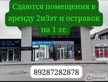 Сдаются помещения на 2,3 эт и остравок на 1эт. гор Назрань . Все вопросы по номеру телефона, указан на фото 89287282878