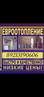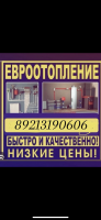 Евро отопление под ключ Работаем быстро качественно Материал сертифицирован! Есть в наличии все материалы Котлы хорошего качества Опыт работы 15 лет Исправим любые ошибки в системе отопления ☎️